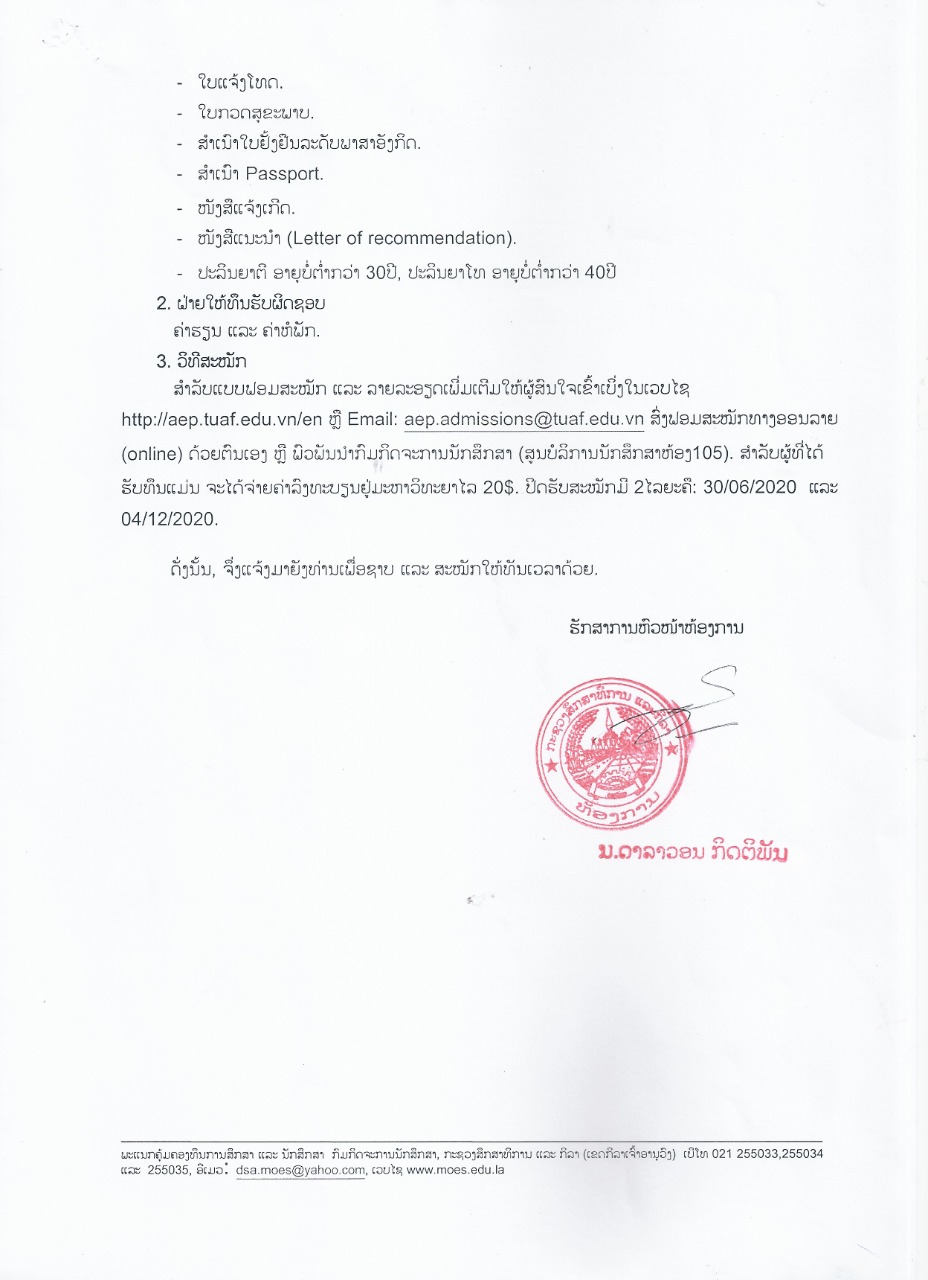 ທຶນການສຶກສາ ຂອງ Thai Nguyen University of Agriculture and Forestry(TUAF) ສສ.ຫວຽດນາມ 2020-21 Written by Super User. Posted in ແຈ້ງທຶນການສຶກສາ Print Prev Next