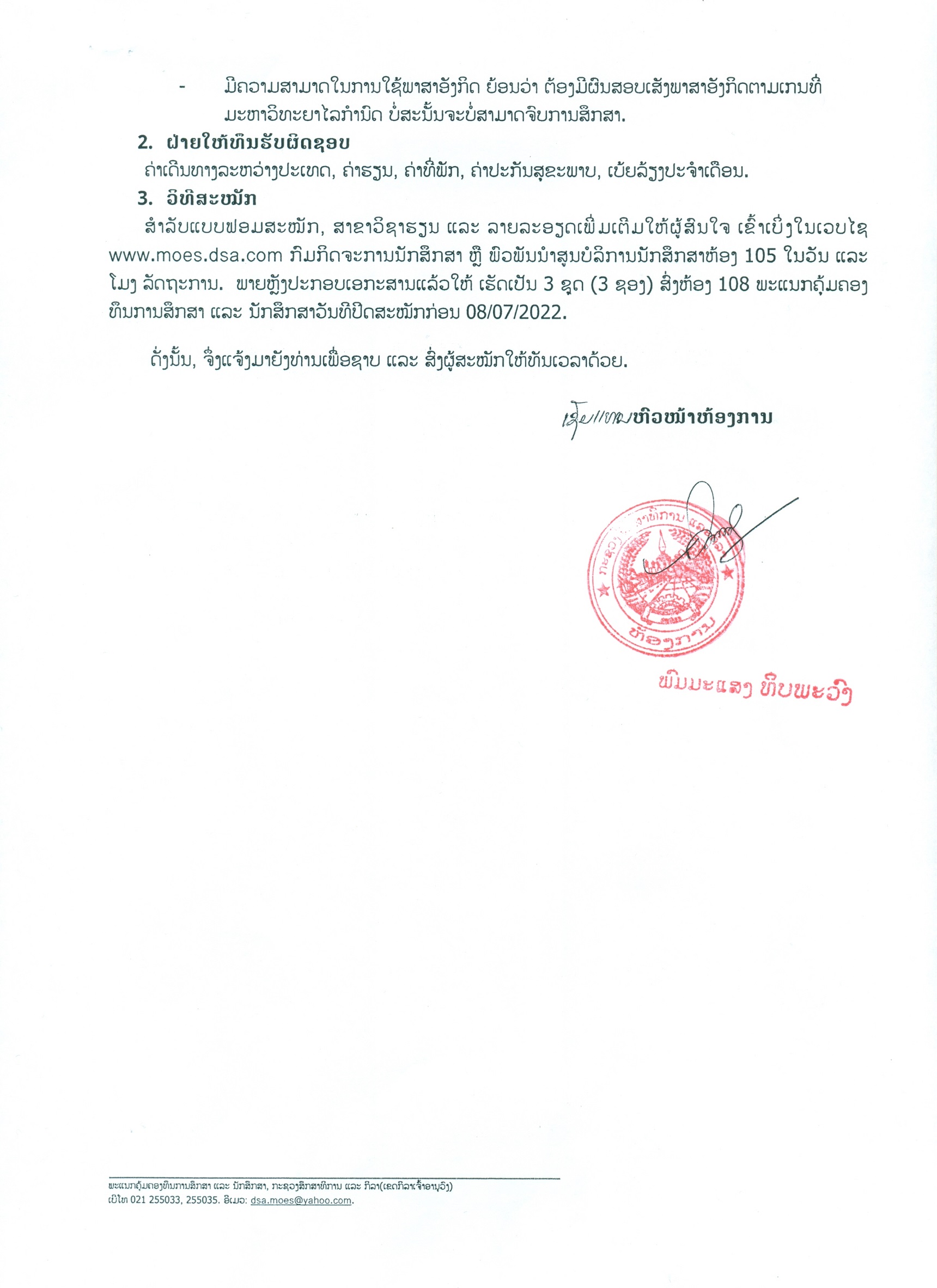 ແຈ້ງທຶນການສຶກສາ ລັດຖະບານໄທ (TICA) 2022 Written by Super User. Posted in ແຈ້ງທຶນການສຶກສາ ດາວໂຫຼດແບບຟອມ ດາວໂຫຼດວິຊາຮຽນ Print Prev Next